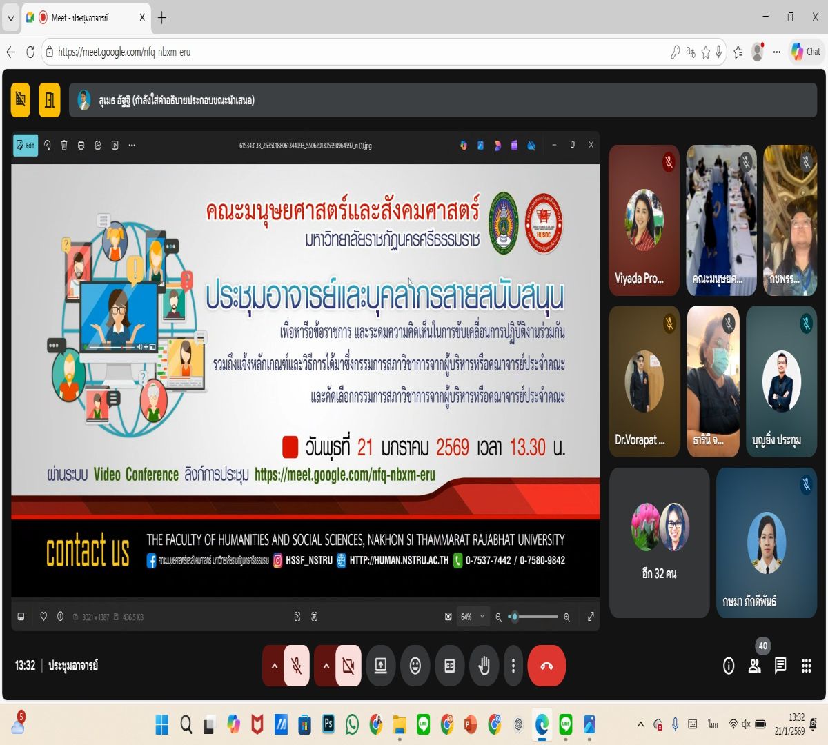 จัดประชุมคณาจารย์และบุคลากรสายสนับสนุน ครั้งที่ 1/2569 เพื่อหารือข้อราชการและระดมความคิดเห็นในการขับเคลื่อนการปฏิบัติงานร่วมกัน