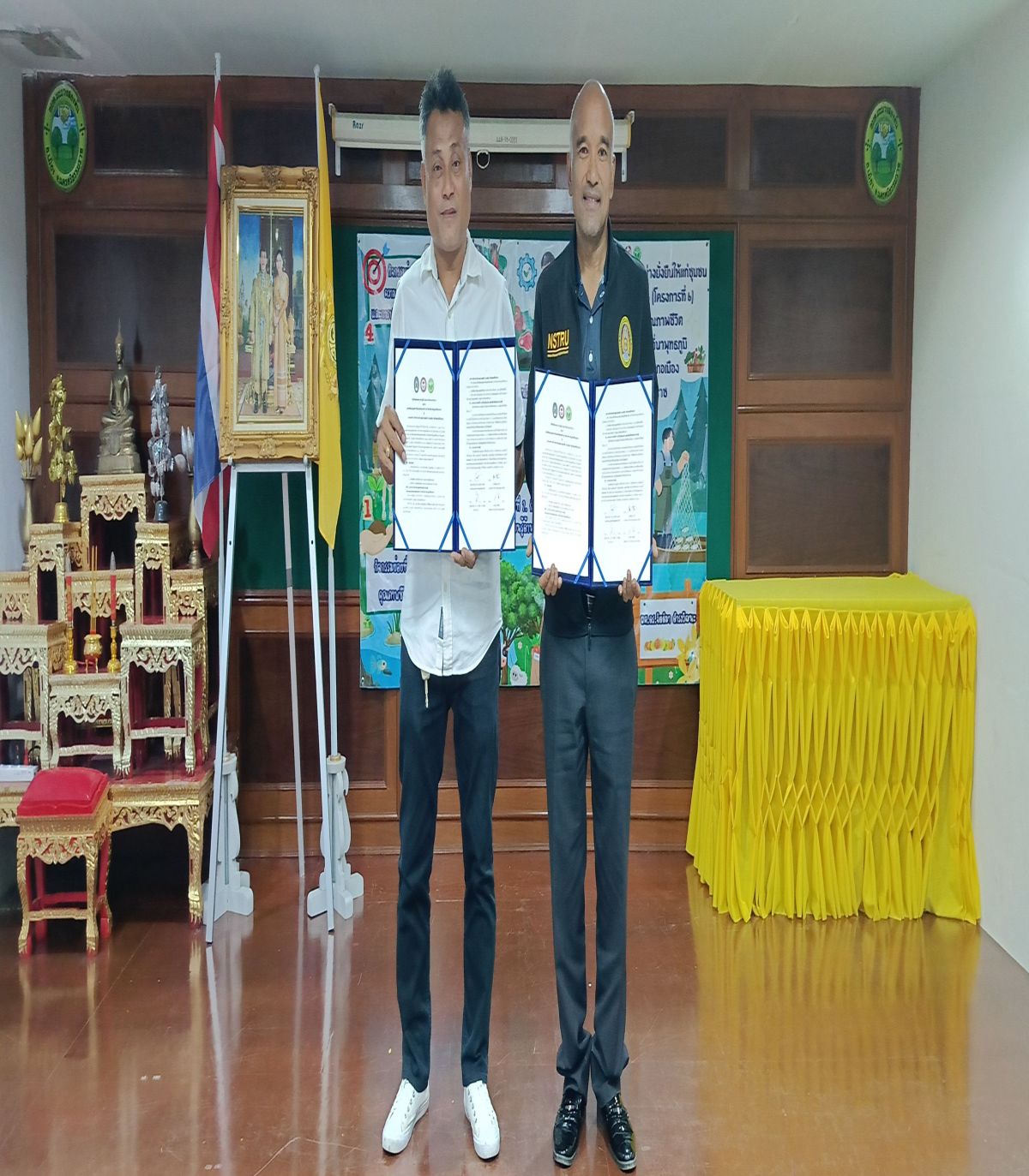 ผู้ช่วยศาสตราจารย์ ดร.สุรินทร์ ทองทศ คณบดีคณะมนุษยศาสตร์และสังคมศาสตร์ มหาวิทยาลัยราชภัฏนครศรีธรรมราช ลงนามบันทึกข้อตกลงความร่วมมือการดำเนินโครงการบริการวิชาการ กับนายพิเชษฐ์ ชตาเริก นายกองค์การบริหารส่วนตำบลมะม่วงสองต้น อำเภอเมือง จังหวัดนครศรีธรรมราช เมื่อวันที่ 31 มีนาคม 2569 ณ ห้องประชุมองค์การบริหารส่วนตำบลมะม่วงสองต้น อำเภอเมือง จังหวัดนครศรีธรรมราช
