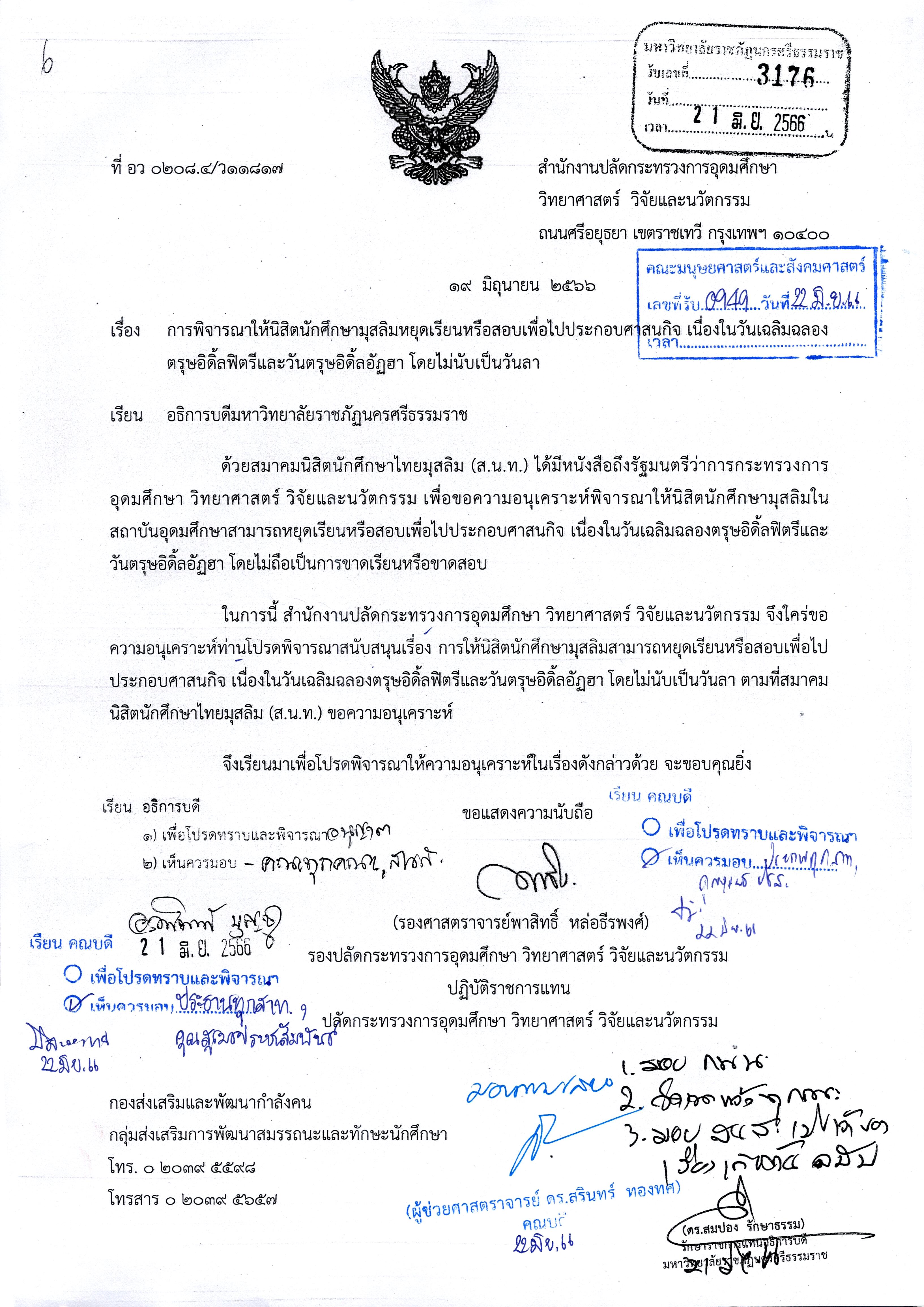 การพิจารณาให้นิสิตนักศึกษามุสลิมหยุดเรียน หรือสอบเพื่อไปประกอบศาสนกิจ